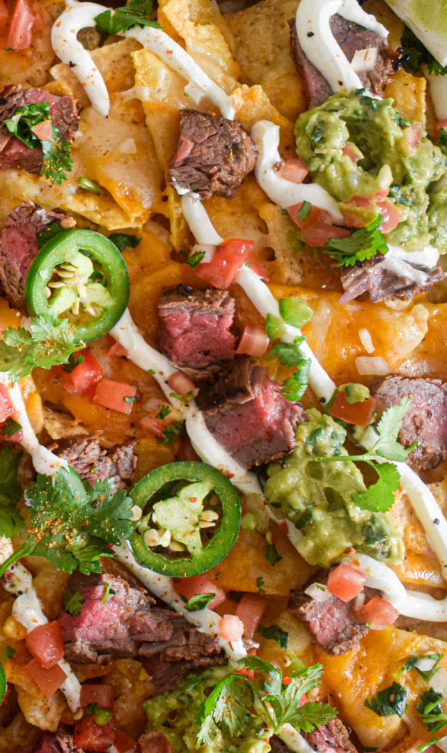 9 Cut steak into cubes and sprinkle over the Doritos, then spoon over your chimichurri