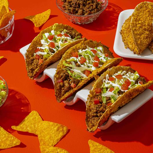 3 Meanwhile, finely crush approximately half a bag of DORITOS® and transfer onto a plate or wide, shallow dish. Reserve the remaining uncrushed chips for garnish.