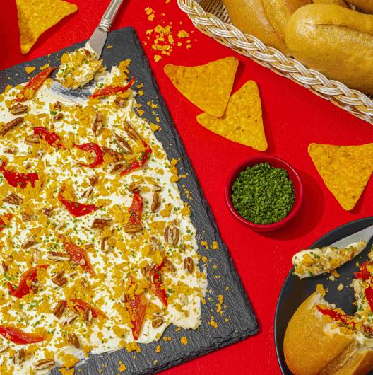 4 Remove the chilled mixture from the fridge and scoop into rounded 1 tbsp-sized portions. Shape into a ball and drop into the crushed DORITOS®, rolling to coat the entire surface in fiery, bold flavor!